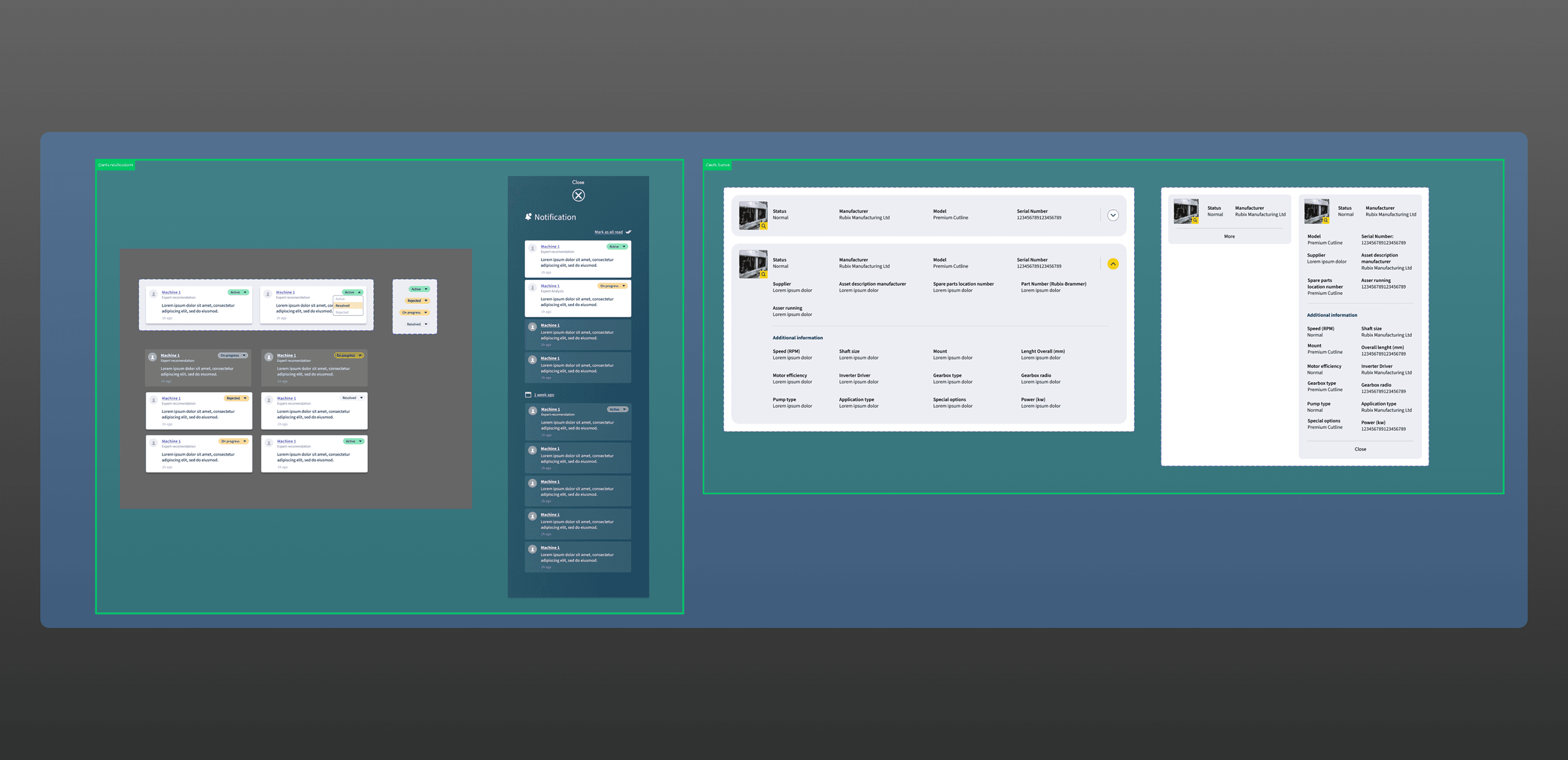 J'ai livré un prototype interactif complet et une bibliothèque de composants modulaires. L'objectif était de permettre aux développeurs d'intégrer rapidement de nouvelles machines sans redessiner chaque écran.