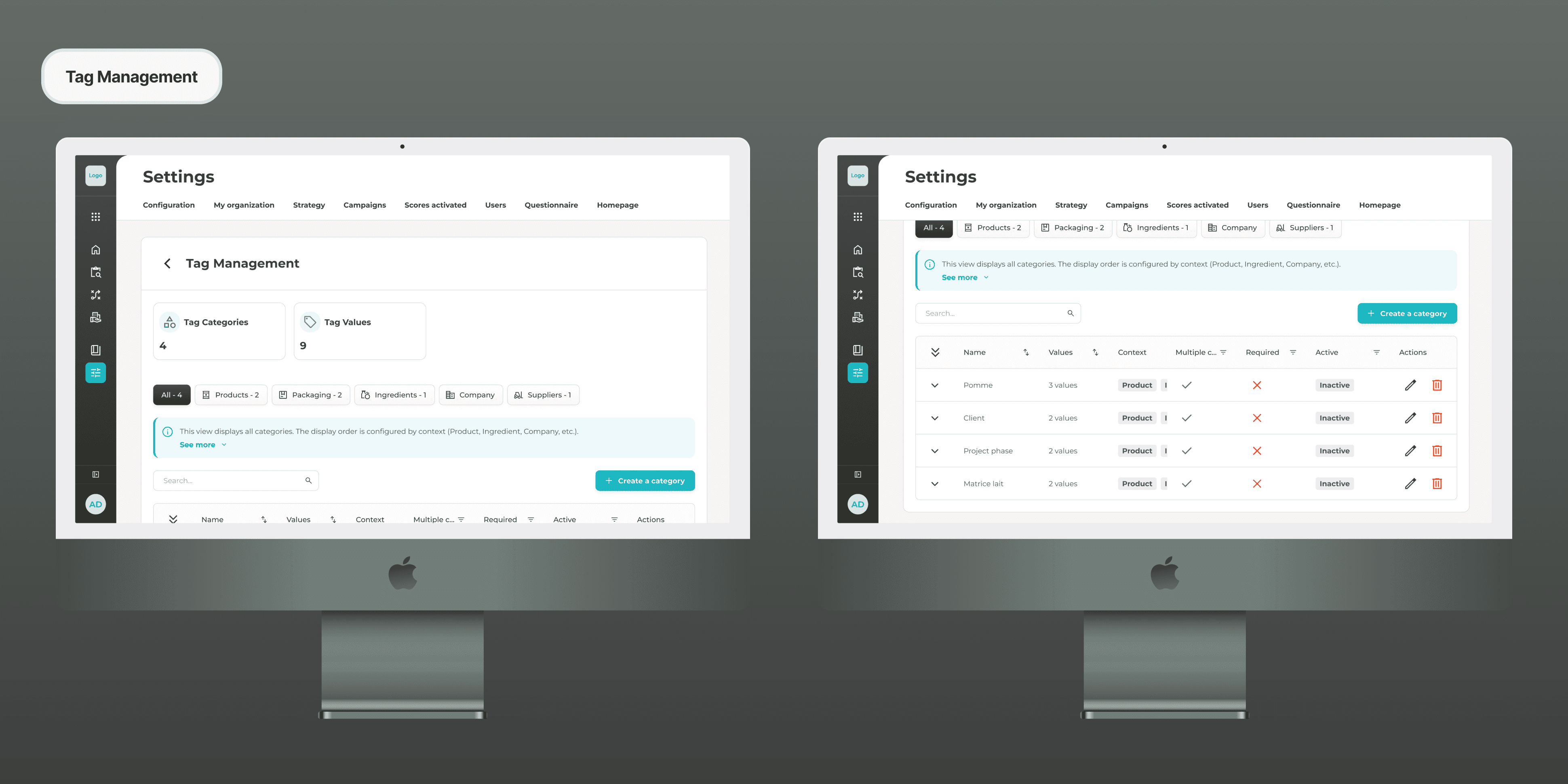 Clarté de l'architecture : Réduction drastique de la charge cognitive grâce au regroupement logique des rubriques globales (Rôles, Brand, Filières, etc.).