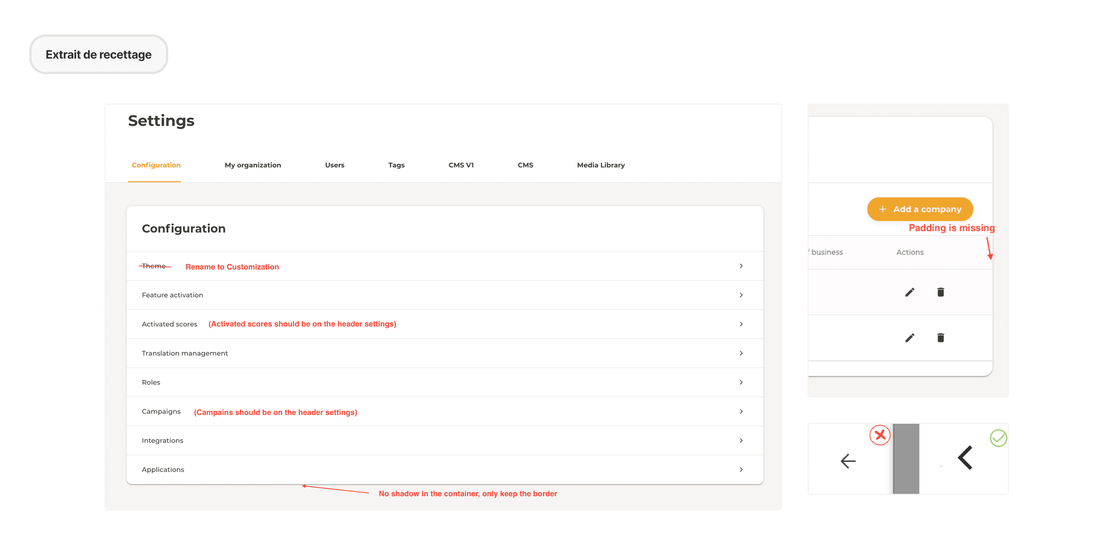 Audit de l'intégration : Analyse minutieuse des versions de UAT pour identifier les écarts (espacements, typographies, comportements…).